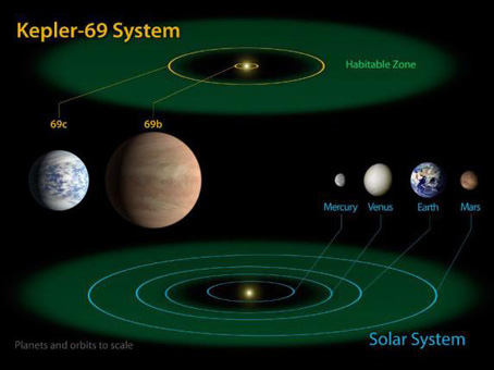 ഭൂമിയില്നിന്ന് 1200 പ്രകാശവര്ഷമകലെയുള്ള കെപ്ലെര്-62 എന്ന നക്ഷത്രത്തെ പരിക്രമണം ചെയ്യുന്നതാണ്, പുതിയതായി കണ്ടെത്തിയ അന്യഗ്രഹങ്ങളില് രണ്ടെണ്ണം. സൂര്യനെക്കാള് അല്പ്പം ചെറും തണുത്തതുമാണ് കെപ്ലെര്-62. അഞ്ച് ഗ്രഹങ്ങള് അതിനെ ചുറ്റുന്നു. അതില് 'കെപ്ലെര്-62ഇ', 'കെപ്ലെര്-62എഫ്' എന്നിവയാണ് ഭൂമിക്ക് സമാനമായ ഗ്രഹങ്ങള്. ആ ശിലാഗ്രഹങ്ങളില് വെള്ളവും മഞ്ഞുമുണ്ടാകാന് സാധ്യതയുള്ളതായി ഗവേഷകര് കരുതുന്നു. ഭൂമിയെ അപേക്ഷിച്ച് 60 ശതമാനം വലിപ്പം കൂടുതലുള്ള ഗ്രഹമാണ് കെപ്ലെര്-62ഇ. മാതൃനക്ഷത്രത്തെ ഒരുതവണ ചുറ്റാന് അതിന് 122.4 ഭൗമദിനങ്ങള് വേണം. കെപ്ലെര്-62എഫിന് ഭൂമിയെ അപേക്ഷിച്ച് 40 ശതമാനം വലിപ്പക്കൂടുതലുണ്ട്. അതിന്റെ പരിക്രമണകാലം 267.3 ഭൗമദിനങ്ങളാണ്. കണ്ടെത്തിയതില് ഏറ്റവും ചെറിയ അന്യഗ്രഹം എന്ന പദവി ഇതുവരെ 'കെപ്ലെര്-22ബി'ക്ക് ആയിരുന്നു. അതിന് ഭൂമിയുടെ വ്യാസത്തിന്റെ 2.4 മടങ്ങ് വലിപ്പമാണ് ഉള്ളത്. സൂര്യന് സമാനമായ ഒരു നക്ഷത്രത്തിന്റെ വാസയോഗ്യമേഖലയില് സ്ഥിതിചെയ്യുന്ന 'കെപ്ലെര്-69സി' ആണ് പുതിയതായി കണ്ടെത്തിയ മൂന്നാമത്തെ അന്യഗ്രഹം. അതിന് ഭൂമിയെ അപേക്ഷിച്ച് 70 ശതമാനം വലിപ്പക്കൂടുതലുണ്ട്. 242 ഭൗമദിനങ്ങള് കൊണ്ടാണ് അത് മാതൃനക്ഷത്രത്തെ ഒരുതവണ ചുറ്റുന്നതെന്ന് കണക്കാക്കുന്നു.